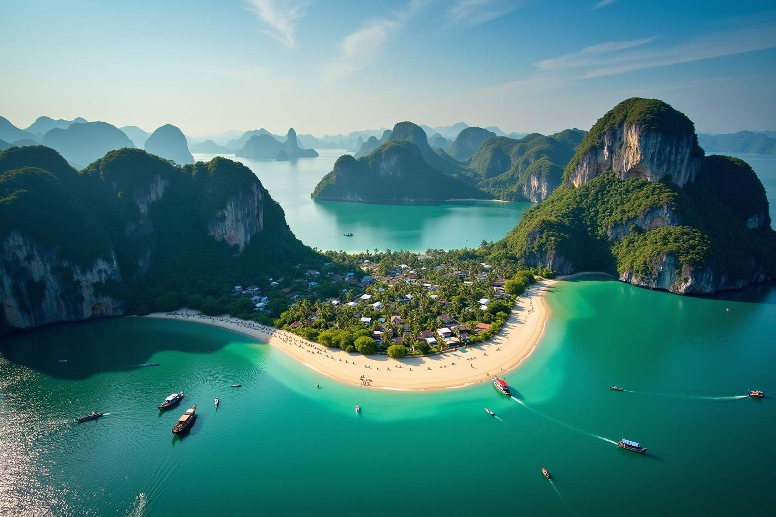 - Die Phi Phi Inseln gelten als fotogenste Inselgruppe Thailands mit türkisfarbenem Wasser und weißen Stränden.