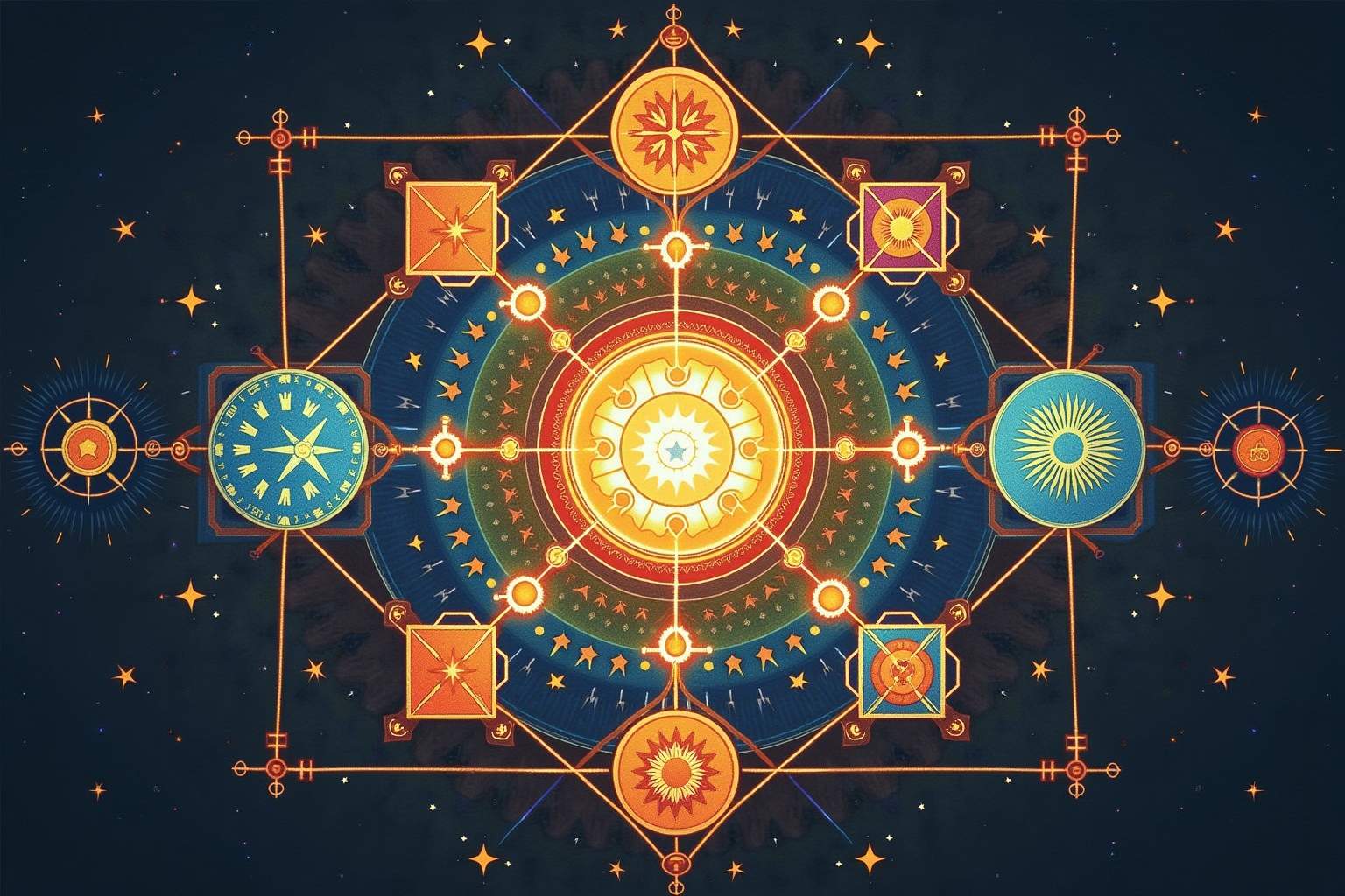 Kardinale Quadrate: Verbinden Widder, Krebs, Waage und Steinbock; erzeugen dynamische, handlungsorientierte Spannungen.
