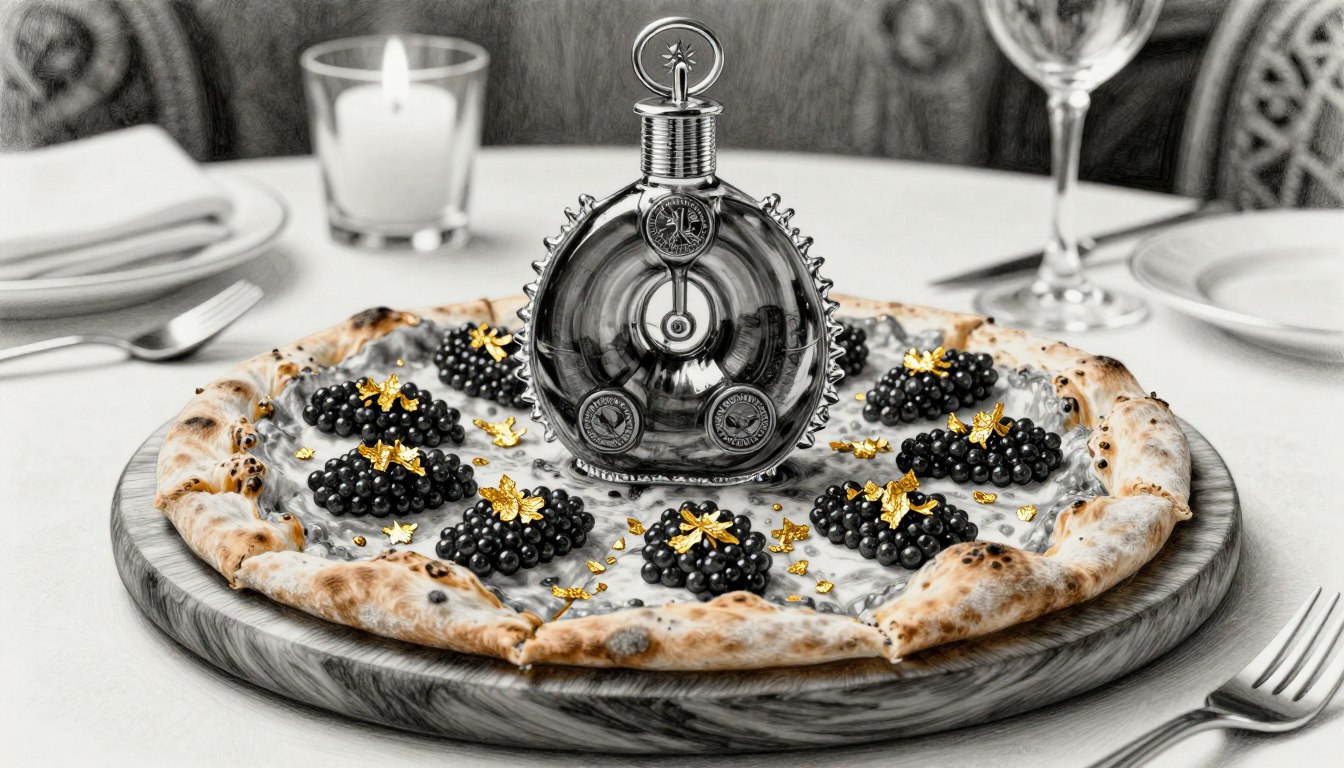 Für wen lohnt sich die Investition in eine 8.300-Euro-Pizza? Die Louis XIII rechtfertigt ihren Preis durch exklusive Zutaten wie drei Kaviar-Sorten und Blattgold, 72-stündige Teigreife und persönlichen Service von Renato Viola.