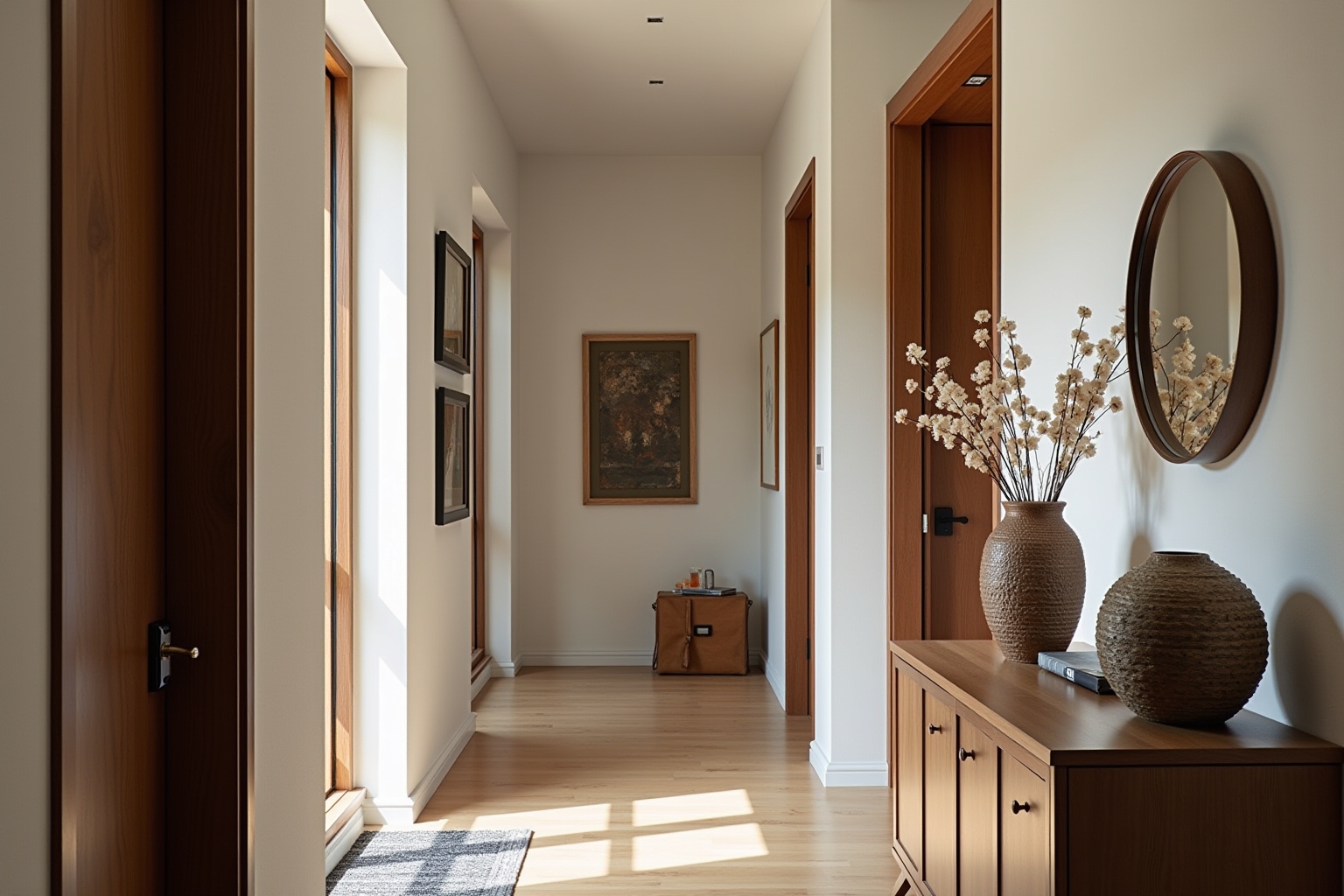 Wie kann ich einen langen, schmalen Flur optisch verkürzen und interessanter gestalten?