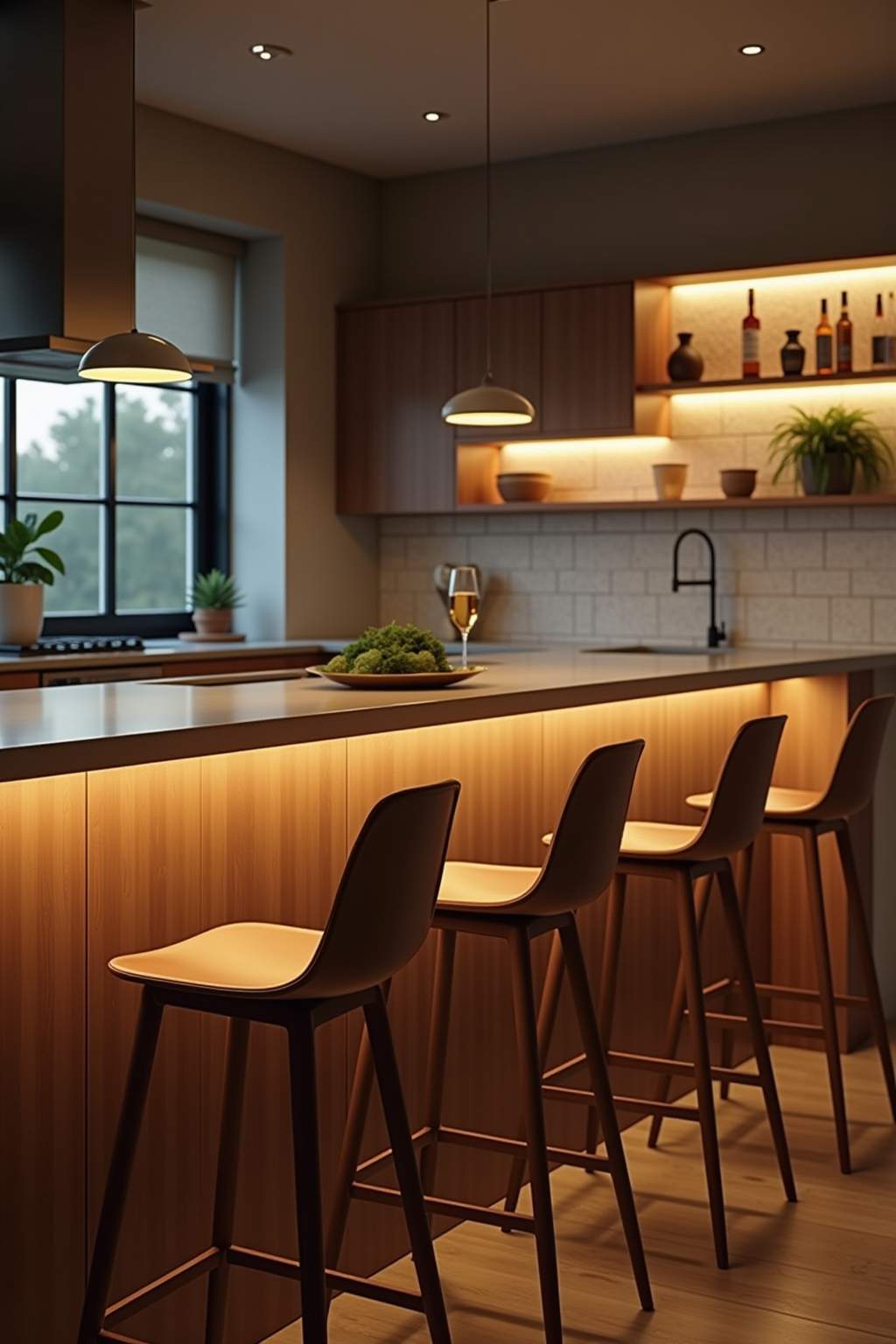 Die richtige Beleuchtung Ihrer Frühstücksbar schafft nicht nur die perfekte Atmosphäre für den Start in den Tag, sondern erfüllt auch praktische Funktionen bei der Zubereitung und dem Genuss von Speisen. Pendelleuchten, die etwa 60-70 cm über der Arbeitsplatte hängen, sorgen für gezieltes Licht und setzen gleichzeitig stilvolle Akzente in Ihrem Küchenbereich. Ergänzen Sie diese durch indirekte Beleuchtung wie LED-Streifen unter den Hängeschränken oder entlang der Bar-Kante, um eine gemütliche Stimmung zu schaffen und Schatten zu vermeiden. Ein Dimmer bietet zudem die Flexibilität, die Lichtstärke je nach Tageszeit anzupassen – hell und funktional für das Frühstück, gedämpft und einladend für den abendlichen Drink.