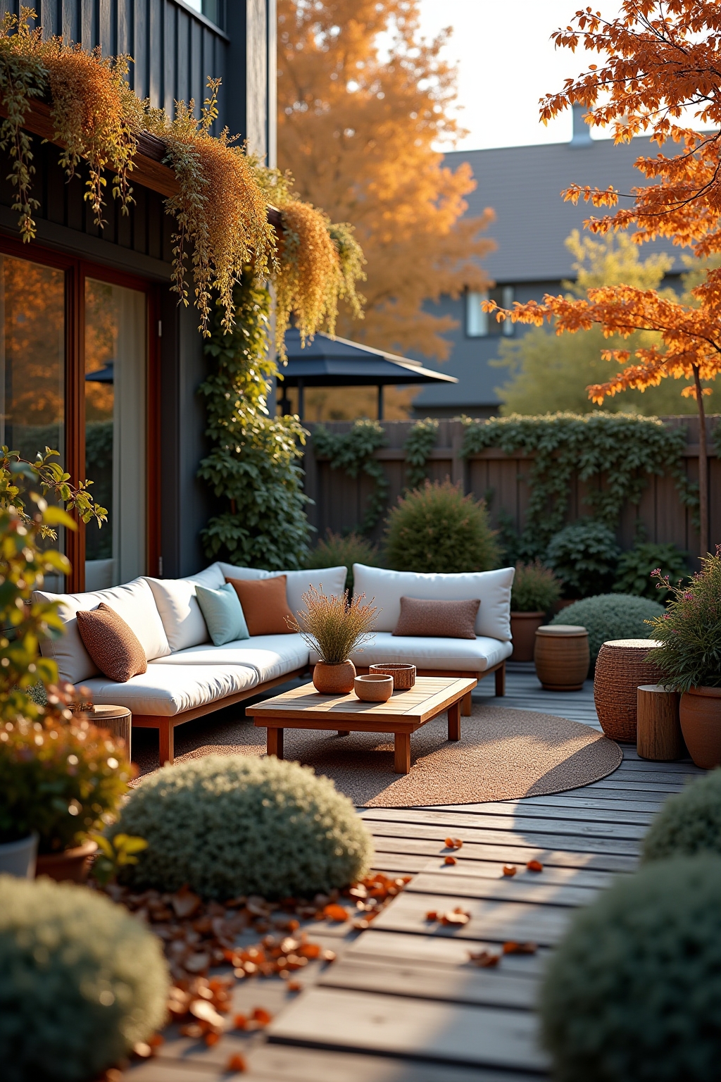 Jahreszeitliche Accessoires: Halten Sie verschiedene Sets an Kissen, Decken und Dekorationen bereit, um den Garten-Wohnbereich saisonal neu zu gestalten.