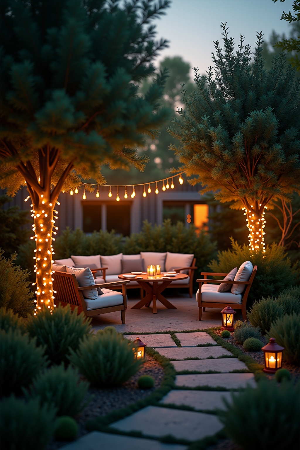 Beleuchtungskonzepte für wohnliche Gartenambiente in der Dämmerung