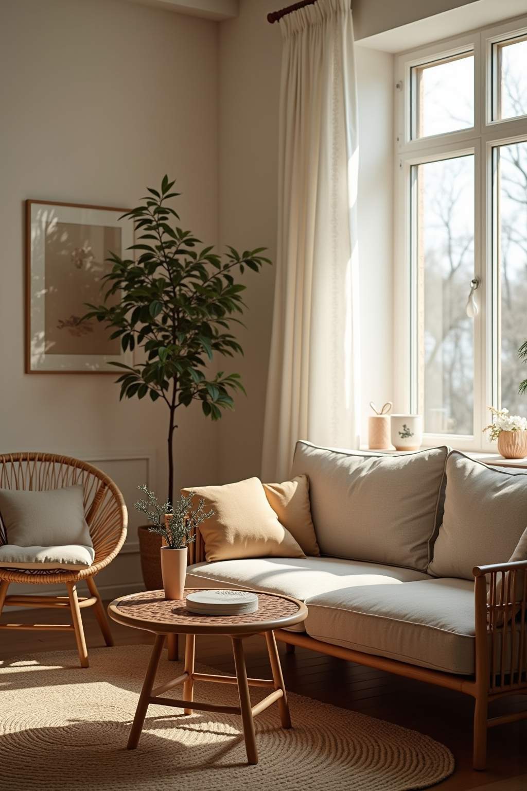 Skandinavische Wohnideen mit Rattan-Akzenten für helle Räume