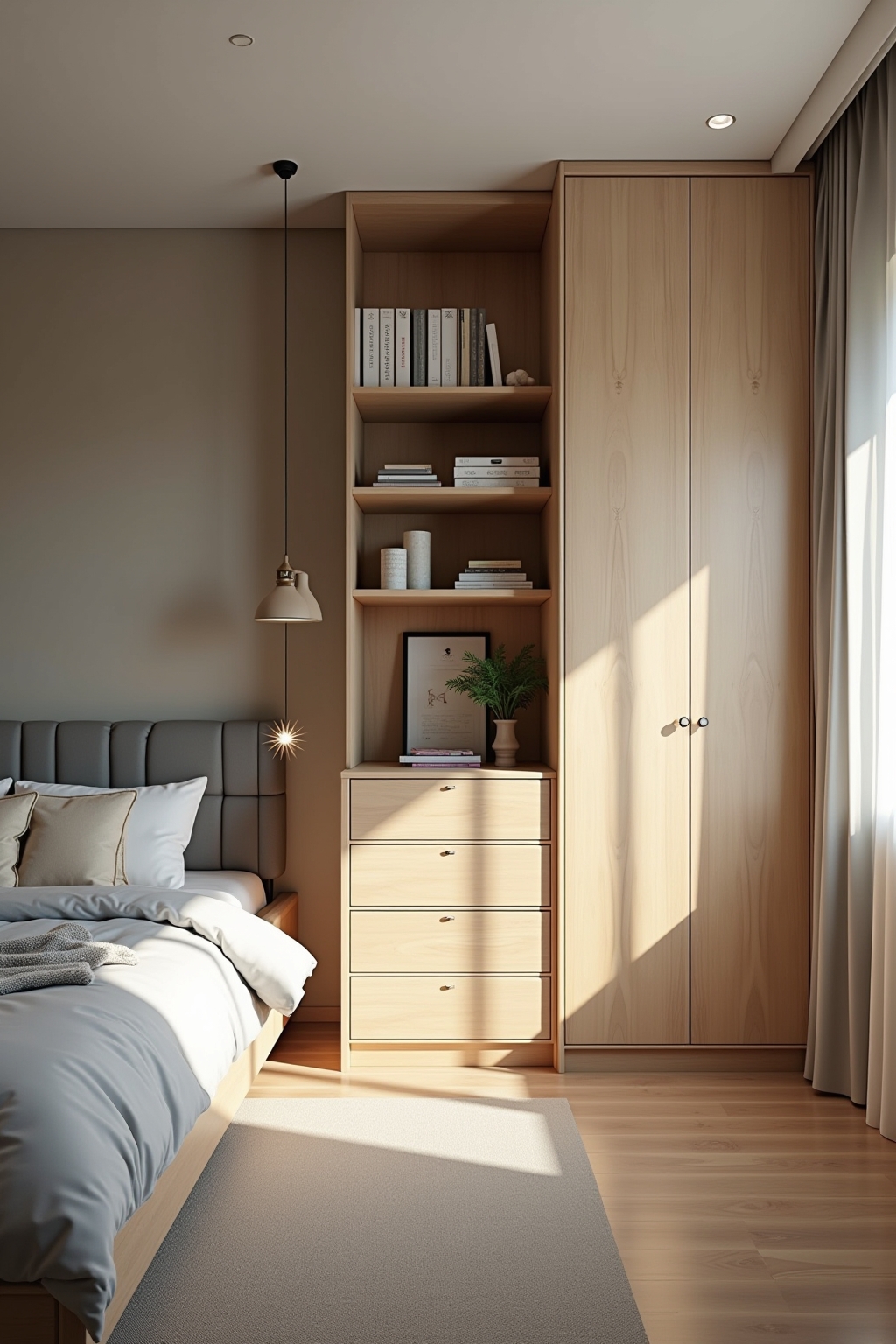 Multifunktionale Möbel wie Nachttische mit integrierten Ladestationen vereinen Ästhetik mit praktischem Nutzen.