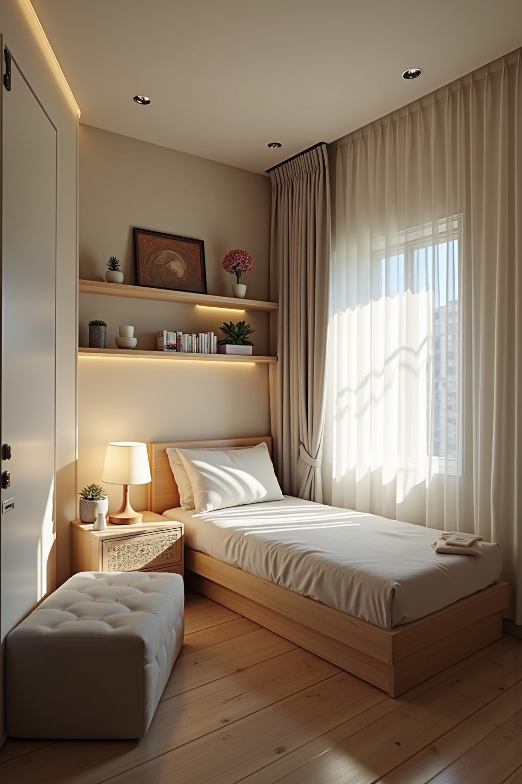 - Helle Farben und Spiegel schaffen optische Weite in kleinen Räumen.
