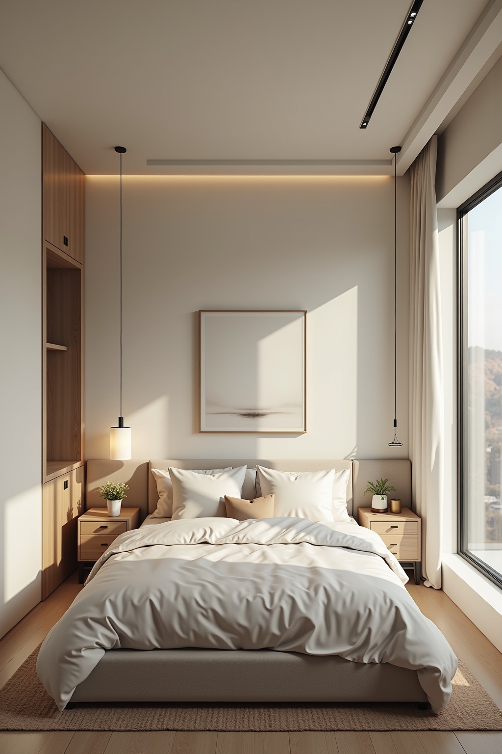 - Minimalistische Schlafzimmer setzen auf reduzierte Formen und neutrale Farben für maximale Ruhe.