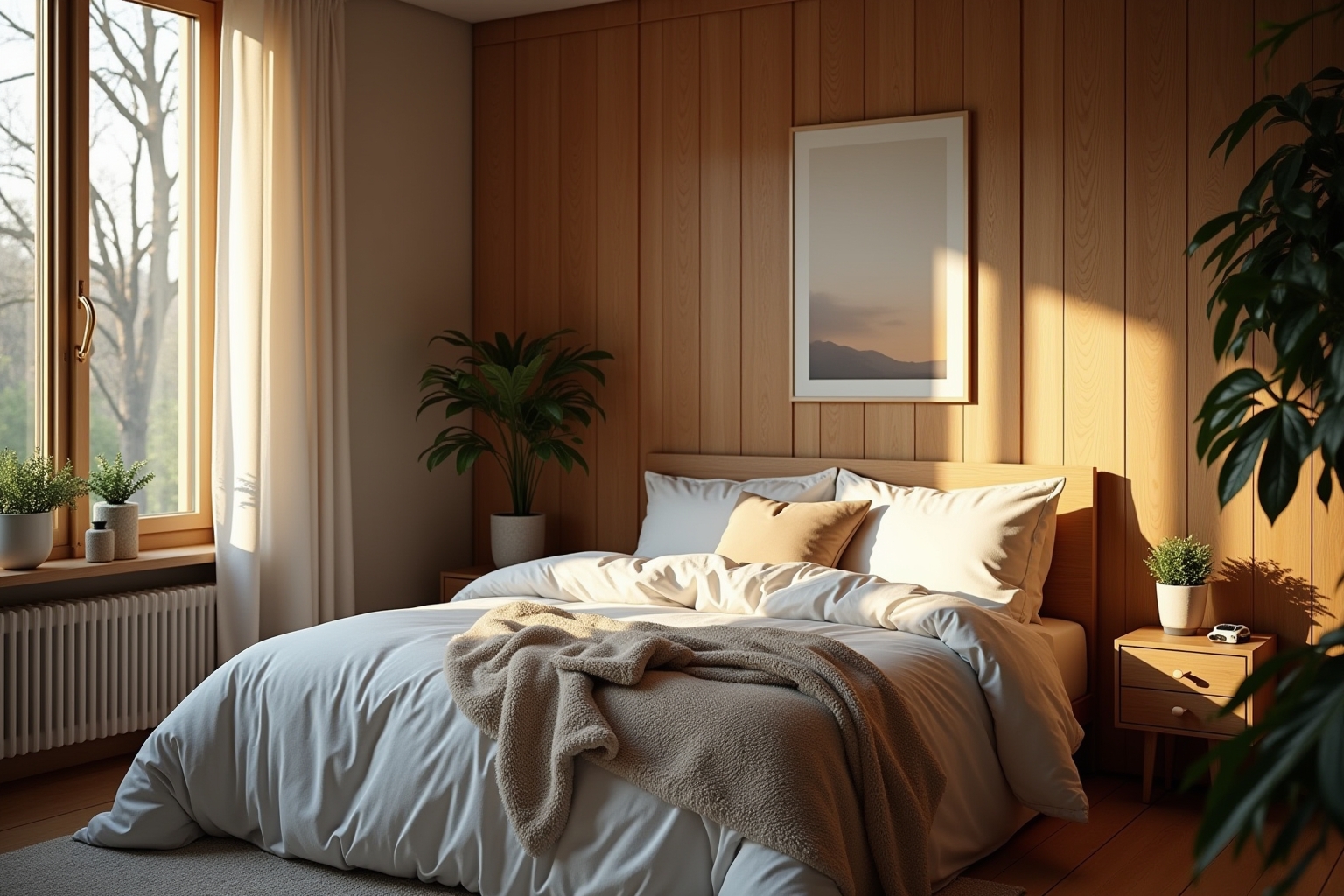 Nachhaltigkeit im Schlafzimmer: Bevorzugen Sie Möbel aus zertifiziertem Holz und Naturmaterialien wie Bio-Baumwolle oder Leinen für Textilien.
