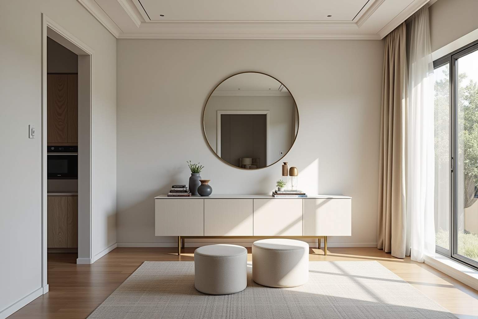 Spiegel sind wahre Wunderkünstler im Wohnbereich, denn sie reflektieren nicht nur unser Spiegelbild, sondern auch das einfallende Licht und vervielfachen es auf magische Weise. Selbst in kleinen, dunklen Räumen können strategisch platzierte Spiegel für eine überraschende Helligkeit sorgen und den Raum optisch vergrößern, indem sie die Grenzen des Zimmers scheinbar auflösen. Ein großer Wandspiegel gegenüber einem Fenster fängt das Tageslicht ein und wirft es in jede Ecke des Raumes, wodurch selbst an trüben Tagen eine angenehme Atmosphäre entsteht. Dekorative Spiegelarrangements können zudem als Kunstwerke fungieren und verleihen jedem Raum eine persönliche Note, während sie gleichzeitig ihre praktische Funktion erfüllen. Für ein besonders beeindruckendes Raumgefühl eignen sich bodentiefe Spiegel, die den Raum visuell verdoppeln und eine großzügige, luftige Wirkung erzielen, ohne dass tatsächlich Umbaumaßnahmen notwendig sind.