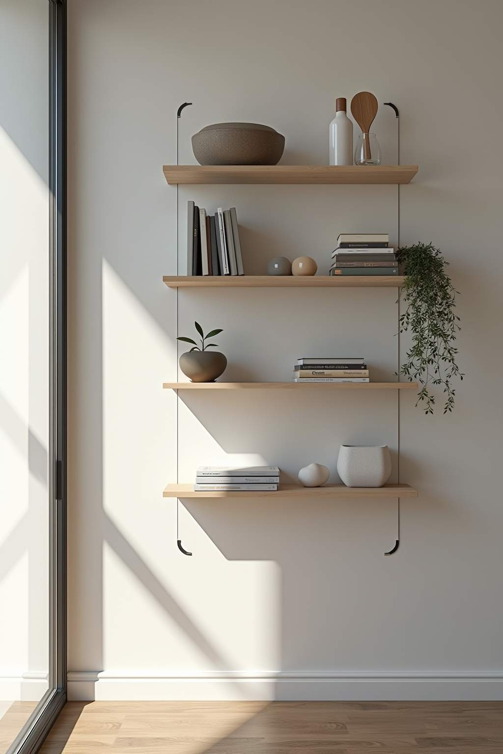 Multifunktionalität: Wandmontierte Aufbewahrungslösungen können gleichzeitig als Raumteiler oder dekorative Elemente dienen.
